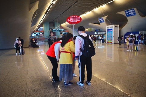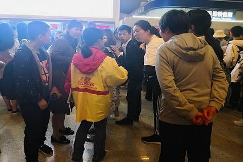 Although volunteers had made full preparations before, they still continued to observe around their scope of responsibility in the early stage of the activity, for the structure of Wuhan Railway Station is more complex. Faced with the questions about the platform, exit, temporary replacement of identity cards, luggage storage and so on, the volunteers all gave the answers as soon as possible while ensuring the accuracy.