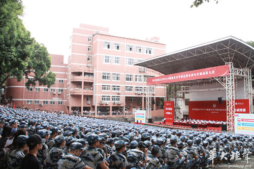 The Voice of CCNU The opening ceremony and military training mobilization meeting for freshmen of CCNU were held at the Outdoor Movie Theater at 8 am on Sept 2. Principal Zhao Lingyun and major Liu Tianhui, head of the military training corps as well as all the officers and soldiers of the Early Warning College of the Air Force attended the conference. All freshmen of 2019 and some teachers' representatives were also present. Vice-principal Xia Lixin presided over the ceremony.