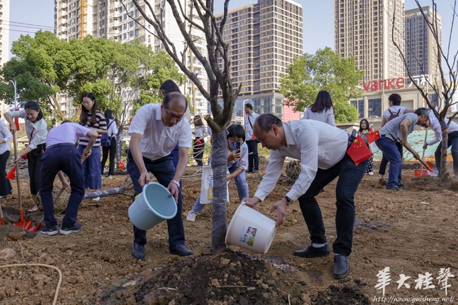 With the development of phase IV——a volunteer activity for party members which is referred to as “I add to South Lake campus”, representatives from different departments went to the left side of the south lake multiple-use building with the volunteers to plant trees, contributing to the prosperity of the South Lake campus.