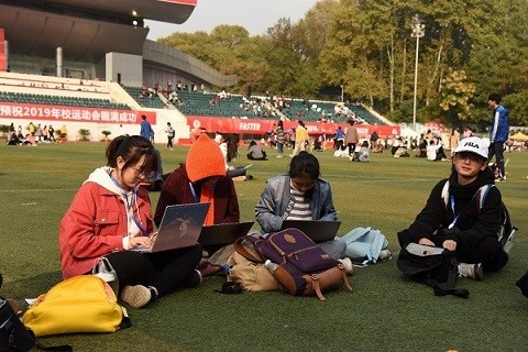 In addition, journalists need to find the right angle and position and to overcome other difficulties in the period of filming. They were often found working just after stuffing the water bottles into their pockets. Apart from photographing and writing, the Department of New Media also kept up with competition process in order to update news timely in QQ zone, Wechat official account and Sina Weibo. Whether it was characteristic opening ceremony or thrilling competitions, media men stayed online accompanying us.