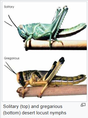 Large swarms are caused by the climate change. Desert locusts are mainly distributed in the subtropical deserts of North Africa, Middle East and South-western Asia. They are born to be timid and to live alone. However, when unusual rainfalls occur in one place, the dormant plants in the desert will thrive abruptly, which provide a chance for the locusts feeding on them to expand wantonly.