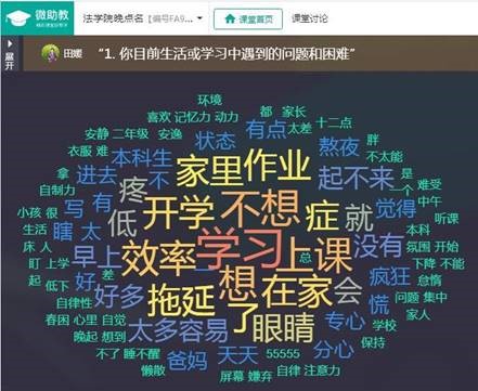 This lecture was spread out around two topics:“ how to do well in the prevention and control of the epidemic” and “ adapt better to the online and domiciliary study”. By using the We-chat, Tian Yuan started the communication with the problem “the difficulties you meet now in your lives or studies”, “the three things that you think you have down best until now in your life or studies” and “the words that you want to say to School of Law”. After learning the current state and difficulties of students, Tian Yuan shared some true cases and her experience with students, analyzed the causes from the perspective of psychology and gave some suggestions for the students, especially about domiciliary study and the employment after graduation. Finally, she shared a poem with students to summarize the attitude that students should have towards domiciliary study and employment after graduation during this special period to encourage students to adjust their mental state, do the prevention, control of the epidemic with a positive attitude, and actively participate in the study.