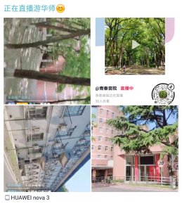 Accompanied by live shot, the towering North Gate, the lush Gui Zhong Road, the cozy dormitories, beautiful peonies and many other scenes leap to the sight. Students also interacted actively on the platform. Some of them said humorously, “life is not easy, counsellor transferred to do live broadcast”. When the shot went to some places, some students expressed, “it is amazing that there is such place in our school that I haven’t been to. I will go there after going back to school”. Some other students talked about the variation from yellow to green of the leaves. Seeing the familiar campus, lots of students expressed their excitement on platform.