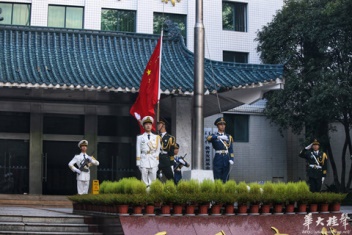On September 18, 2020, in memory of the September 18th Incident, the national flag guards of Central China Normal University held flag raising ceremonies in Boone Library and Youming stadium respectively. At six o'clock in the morning, bathing in the first trace of sunshine in the morning, the members of the national flag guards who would participate in the flag raising ceremony assembled. Before the ceremony officially began, the team members carried out the preparatory work: military posture training and marching practice. The sound of each step hitting the ground was sonorous and powerful.