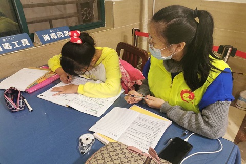 THE VOICE OF CCNU-In the night of October 9th, four of the members in Boya voluntary organization held the 2nd “Offer a hand to the canteen workers” voluntary activity, whose goal was to help the canteen workers look after their children and help with their study.