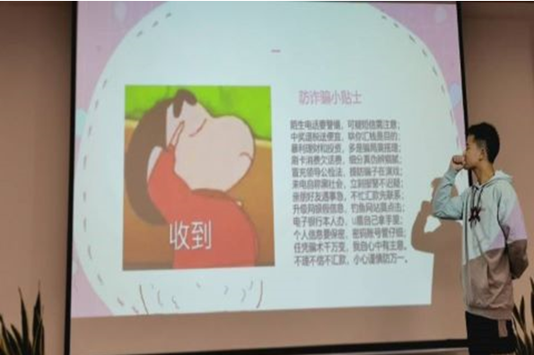 At the beginning of the activity, lecturer Zhang Guotao briefly introduced the main contents of the lecture. Aimed at the safety education of students, the lecture provided clear knowledge of safety for students from the aspects of dormitory, fire prevention and frauds and so on. To begin with, Zhang Guotao came straight to the dormitory safety in the lecture which was concerned by everyone to arouse students’ awareness of property safety and reminded them of the importance of taking good care of personal valuables in case of burglaries and loss. The Research Center for Rights and Interests specially issued a series of measures like putting up notices to look for items or owners so as to minimize the losses of students. At the same time, Zhang Guotao mentioned some other points which were worthy of attention such as falling objects and electrical safety.