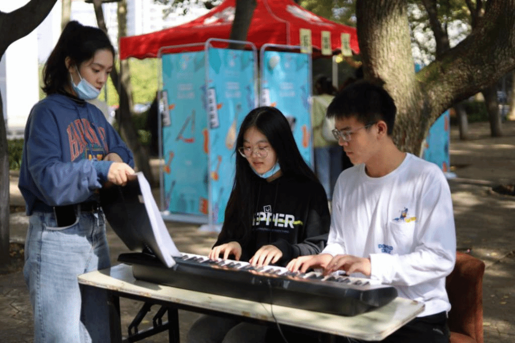 "Music into Hearts " instrument popularization exhibition innovated once again, holding the concept of “making friends through music", so that the whole school students who love music can collide with the spark of music in the exhibition, immerse themselves in music together and enjoy the beauty of music. The combination of "narrative, performance and game" was a highlight of this popularization exhibition. It meant to understand through the narrative, to feel through the performance and to recall through the game.