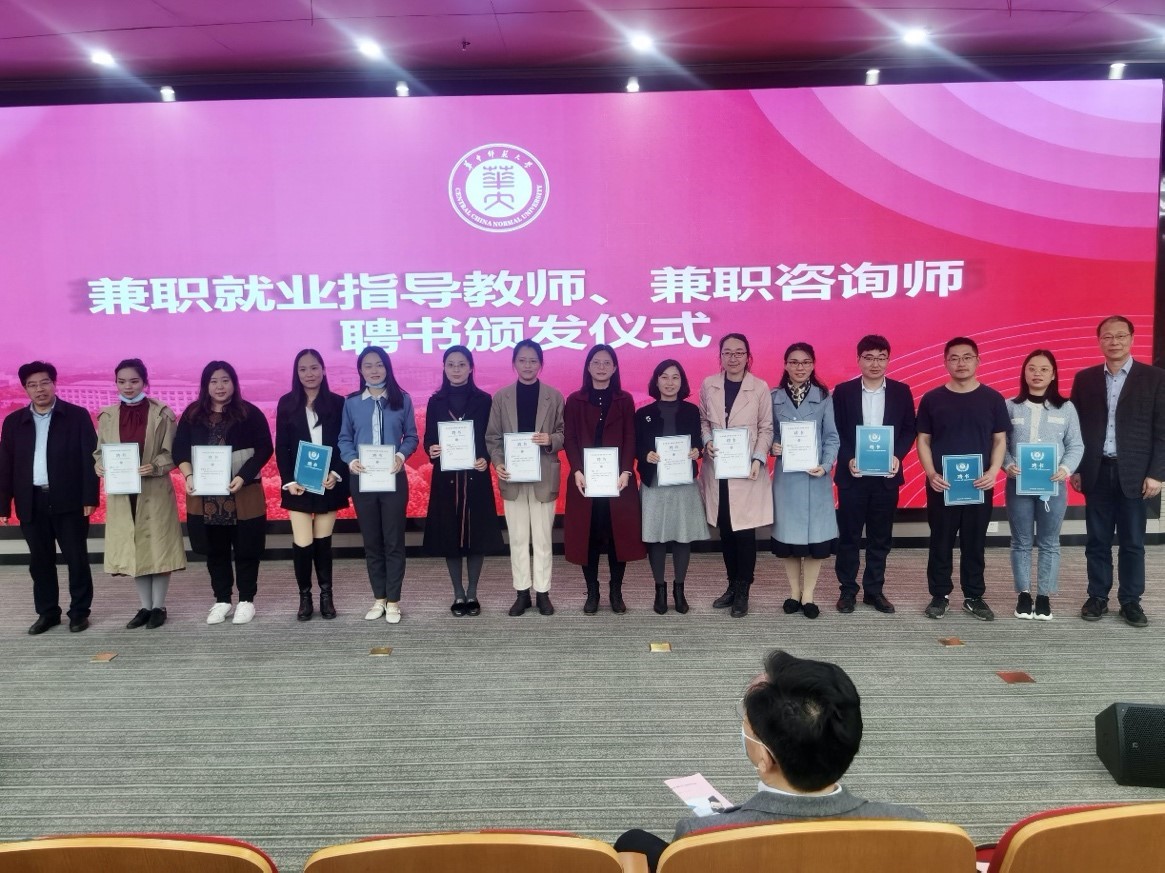 After the speech, Wang Maosheng, director of the Student Admission and Employment Office, read out The Decision on the Employment of Part-time Employment Guidance Teachers and Part-time Personalized Consultants of CCNU, and letters of appointment were issued by President Peng and other leaders.