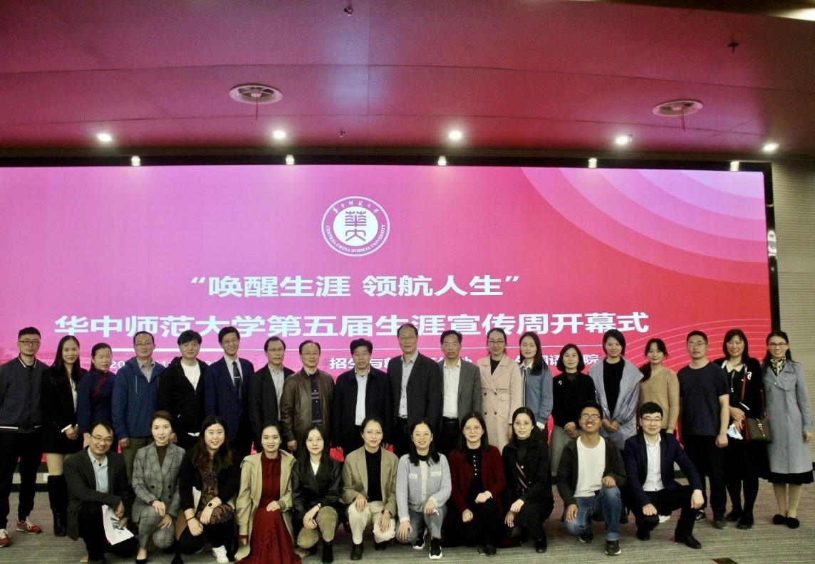 On the afternoon of November 12th, the fifth career publicity week and “Awaken Careers” counselling demonstration class was held successfully at the conference hall on the first floor of the Nanhu Complex Building. This career publicity week was sponsored by the Student Admission and Employment Office of CCNU, and was hosted by School of Foreign Languages, School of Sociology, School of History and Culture, School of Psychology and School of Life Sciences, which was designed to thoroughly carry out the fundamental task of strengthening moral education and cultivating students, lead students to develop correct career view, cultivate their ability to develop their career and make their decisions and help students to realize their life goals. There were lots of people attending this opening ceremony and demonstration class, including Peng Shuangjie, the Vice President of CCNU, Wang Maosheng, director of the Student Admission and Employment Office, Li Yun, secretary of the Party Committee of School of Foreign Languages, Lang Dongpeng and Qin Shitai, deputy directors of the Student Admission and Employment Office, persons in charge of employment work of each student teaching unit, all full-time teachers and part-time teachers of career development and employment guidance courses, counselors of the fresh men both undergraduate and graduate students of each schools and all undergraduate freshmen of School of Foreign Languages of 2020.