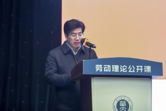 At the beginning of the course, Zhao Lingyun, party secretary of the university, guided the students to learn more about the spirit of model workers remarked by Xi Jinping, general secretary of the Communist Party of China Central Committee, at a gathering to honor model workers and exemplary individuals on November 24, interpreting in detail the relevant documents on labor education issued by General Office of the State Council and the Ministry of Education and emphasizing the labor education as an important part of the morality education in the university. He put forward the opinion that students should set up the concept of labor and regard the labor as the irreplaceable way to grow and create happiness. Next, Zhao Lingyun, party secretary of CCNU, delivered a wonderful speech from three aspects: "work is one's bounden duty", "work is the foundation of one's life" and "work makes one's dream come true".