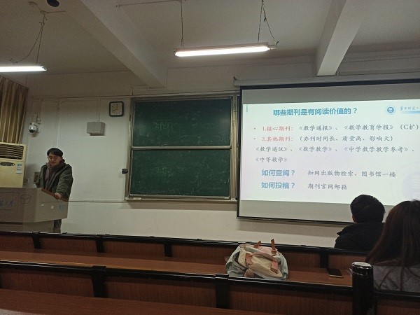 At the beginning of the session, Song Shuai introduced Zeng Xinyang, the keynote speaker, to the participants, and said, “Zeng Xinyang has rich experience in scientific research and award-winning. As a result, I firmly believe that you will learn a lot after listening to his sharing.” Then Zeng Xinyang delivered his sharing speech about scientific research on mathematics education which composed of three parts: “basic information”, “declaration of issues” and “paper writing”. First of all, Zeng Xinyang introduced the basic information of scientific research, showed the relevant mathematical journals, and attached great importance to reading valuable journals. He said, “Undergraduates should carefully study the methods and approaches of how to consult journals and how to submit articles to journals, so as to be prepared for a rainy day.” Then Zeng Xinyang showed some specific ways to participate in the scientific research, recommending three types of the scientific research on education: “experience summary”, “investigation and research” and “content analysis”.