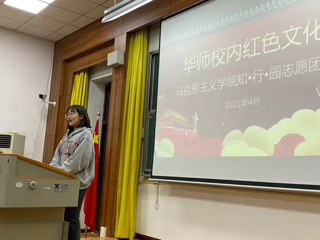 In order to deepen CCNUers' understanding and learning of revolutionary resources on campus, two members of the Know-Act-Garden volunteer service team came to Classroom 1101, the site for the evening roll call of undergraduates of Class 2020 of School of Political Communication, on the evening of April 11, to conduct a lecture on the theme of "Introduction of revolutionary resources in CCNU".