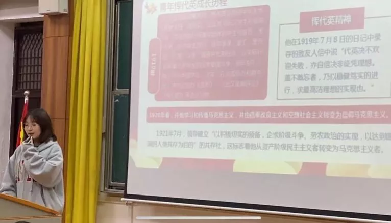 On the evening of April 11, team members arrived at Classroom 1101 to make presentation on the topic. The lecture focused on the life and thoughts of Yun Daiying, an alumnus of CCNU. The speaker, Shi Xiangyi, told the revolutionary story of Yun Daiying from three perspectives in turn: his growth process, educational thoughts and theories, and the Liqun Book Club.