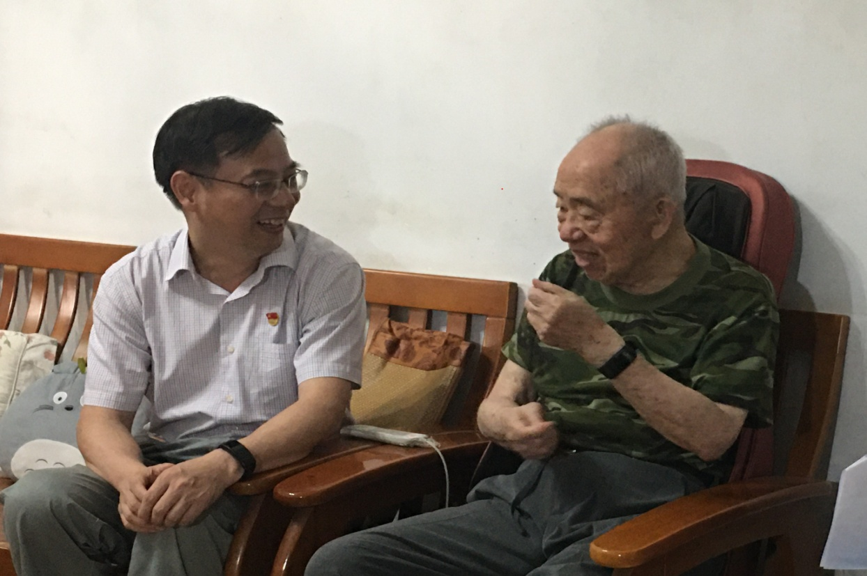 Wang Lin, a veteran soldier over 90 years old, has been a party member for 75 years. He went through ups and downs, pursued revolution, renounced his pen to join the war against Japan and saved the nation, stuck to his original aspiration to follow the Party, and tempered himself into a strong member of the Communist Party of China in the period of heroic Liberation War. "Thank you very much for coming to see me when you are so busy." Seeing party secretary of CCNU come to his door, Mr. Wang was extremely moved. Holding Mr. Wang's hand, Zhao Lingyun said: "you are the old soldier, listening to the party for a lifetime, always going with the party, and paying attention to the career development of the university. You always work hard and devote yourself silently. You truly set an example for us." He asked Mr. Wang about his daily life and physical condition with concern, sent them condolence payments and gifts, and urged leaders of relevant department to care about senior party members and cadres, doing their best to improve their lives so that they could fully feel the warmth of the party.