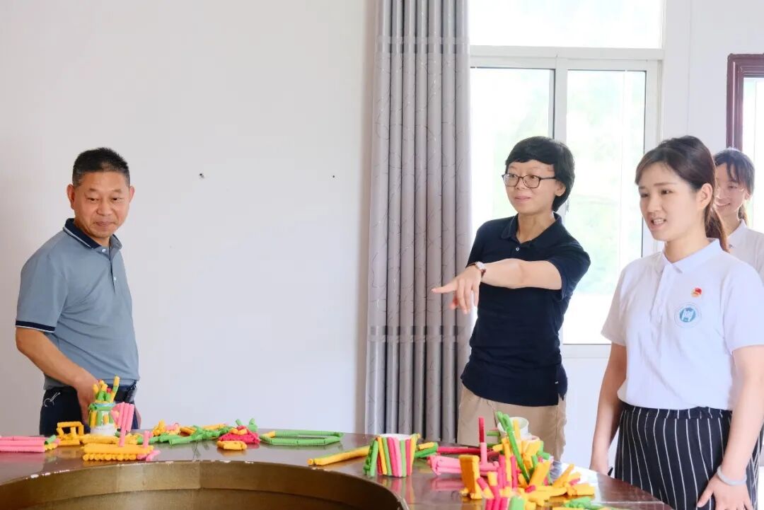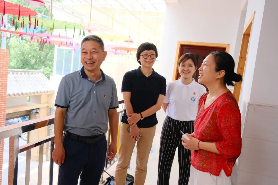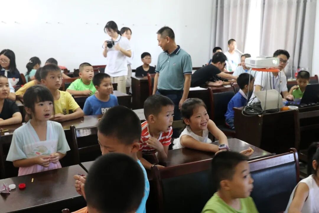 At about 10 o 'clock in the morning, Zhang Mingsheng and Ma Ying, accompanied by Gao Yuqian, the instructor of the practice team, inspected the teaching situation of the practice team. At that moment, Zhang Hao, a member of the practice team, was giving a class on Material Classification to more than 40 children from "Hope Home". Zhang Mingsheng and Ma Ying stopped outside the door to watch the process of the course. Zhang Mingsheng asked about the age distribution and learning situation of the students and encouraged the students to listen carefully in class, hoping the practice team members to prepare lessons with all their heart as well as according to the interests and characteristics of the village children to carry out a variety of forms of classroom teaching.