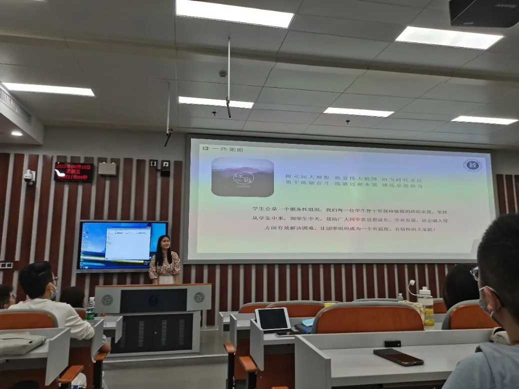 On the afternoon of September 10, 2021, the final report meeting of the 36th Youth League Student Union of the College of Economics & Business Management was successfully held in classroom N215, Nanhu Complex Building. Yue Zhengrong, Secretary of the Youth League Committee and counselor of 2020 undergraduate, and Zhao Wan, deputy Secretary of the Youth League Committee and counselor of 2019 undergraduate, attended the meeting. The meeting was presided over by Li Xin of the organization department and attended by all members of the 36th Youth League organization.