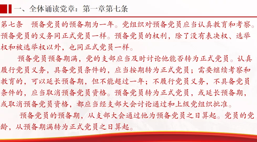 In the first activity, Comrade Liu Yiying led all probationary Party members to learn and read article 7 of Chapter I of the party constitution, introduced the basic situation of probationary party members to all probationary party members, and further clarified the obligations of probationary party members.