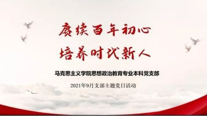 On the evening of September 27, the September theme Party day activity of the undergraduate Party branch majoring in ideological and political education of the College of Marxism was held online. The theme of this activity is "continue the centennial initial heart and cultivate new people of the times". It was presided over by Comrade Cai Fang, and Zhao Yunyi, a member of the branch and instructor, participated in this activity.