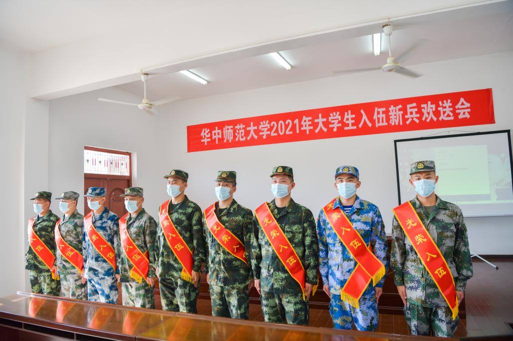 CCNU Online (correspondent Zhang Zhaozheng Gao Xia Ding Hui) Students joined in the army force, for their dreams of contributing themselves to the construction of our country. On 22 September, the going away party for the enlisted students of the 2021 was held successfully in the Militiaman Training Base of Jianghan District. Since 13 students of our university were admitted to setting off for the battalions in the next few days, the responsible for the base, the teachers of the department of student affair as well as the principals of the related schools conducted a farewell party for them.