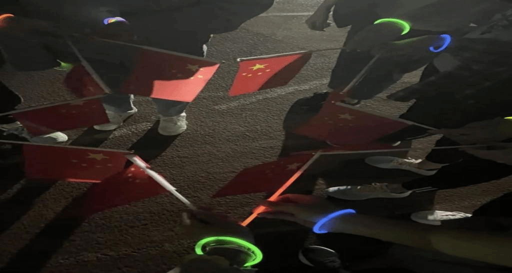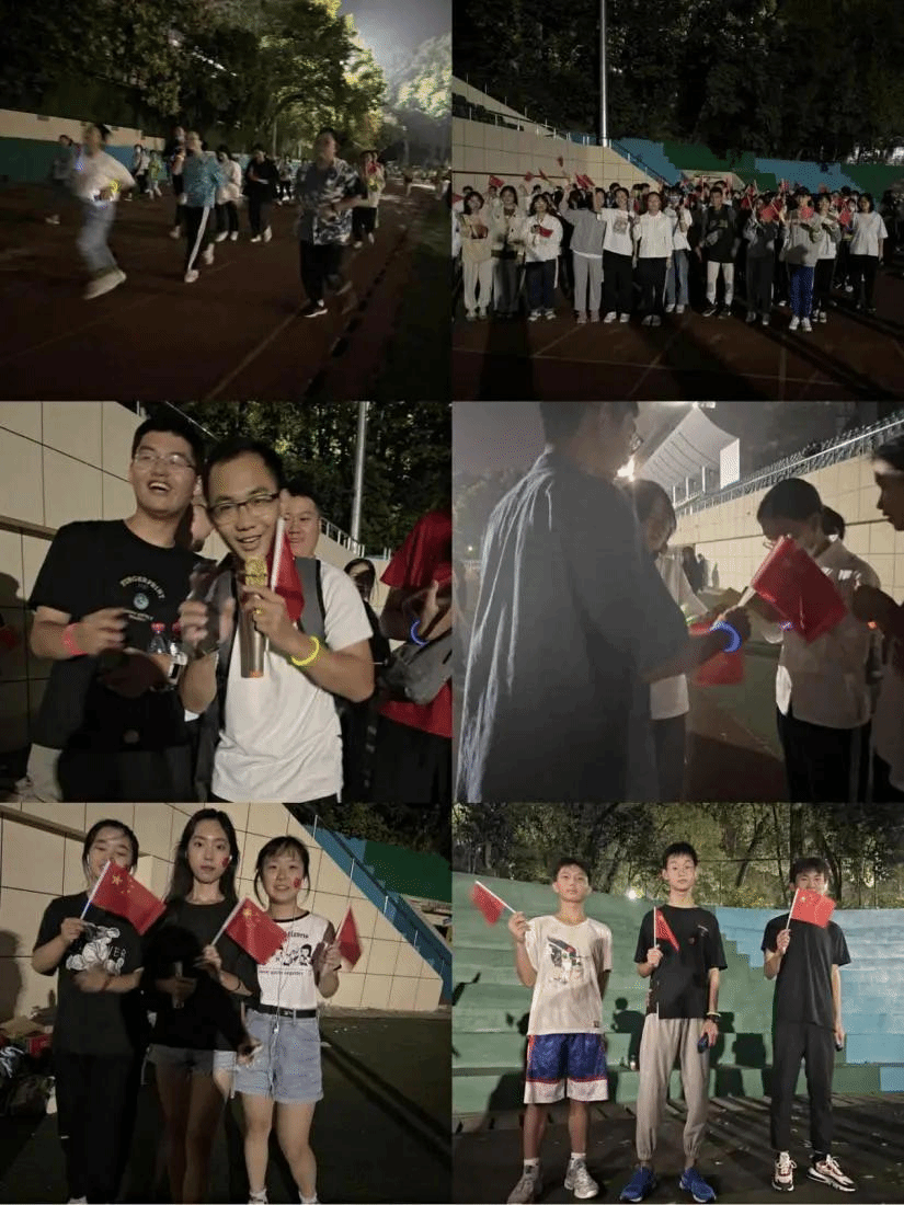 Before night jogging, grade cadres of freshmen of 2021 distributed material to the students taking part. The atmosphere was heated and students itched for a try. As soon as the order of ”Run! ”was issued, night jogging began. With impassioned music, students were wiping off the sweat of youth, waving little red flags in their hands, running towards light and celebrating our motherland’s birthday gladly.