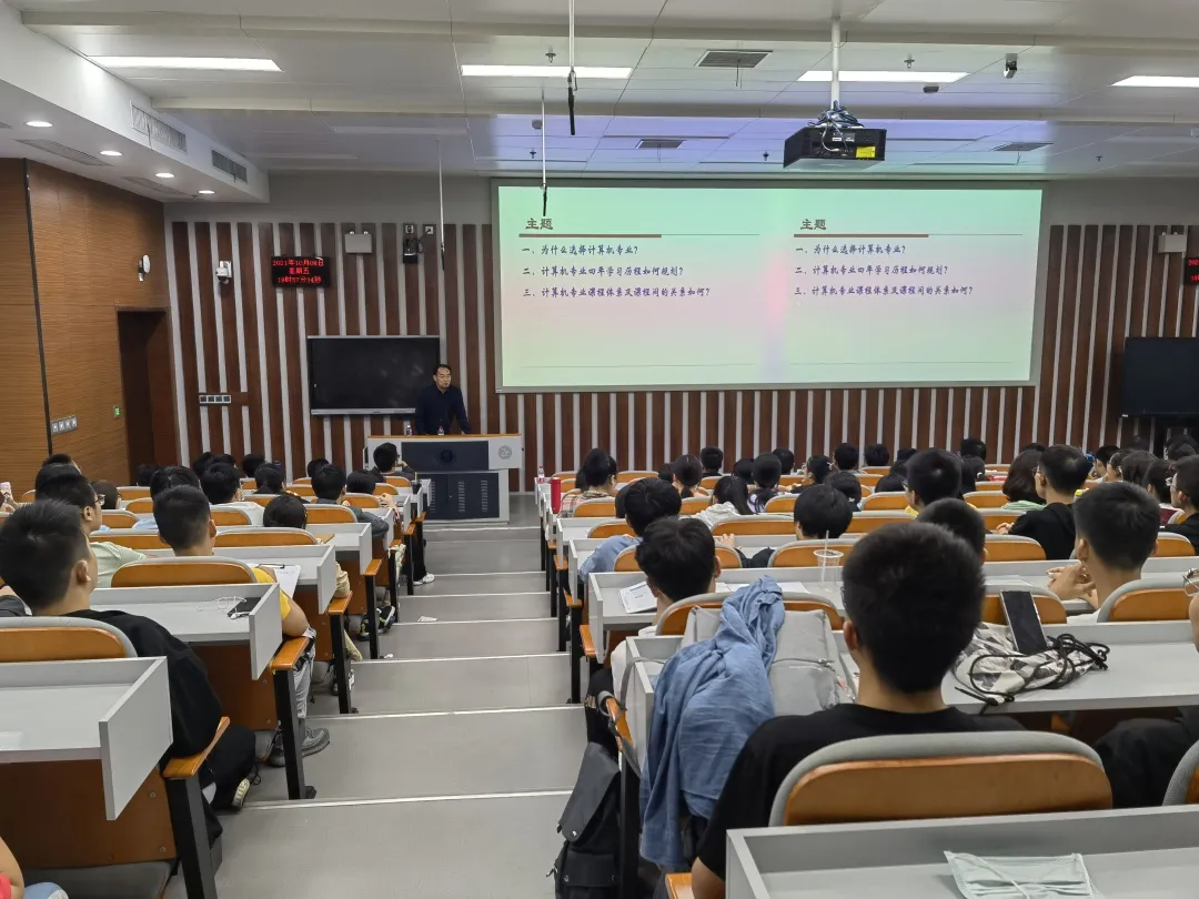 Subsequently, Wang Jinghua used vivid metaphors to describe the computer professional class system and the relationship between the courses, and used concise and easy-to-understand mind maps to help freshmen understand the huge computer professional class system. He expressed that to become a computer expert, every student need to "practice internal skills and practice hard skills." Basic courses, software development, network development, hardware development, database development, and artificial intelligence development were interrelated and interrelated. Only by extensive research, deep learning, and professionalism can they become an excellent computer person.