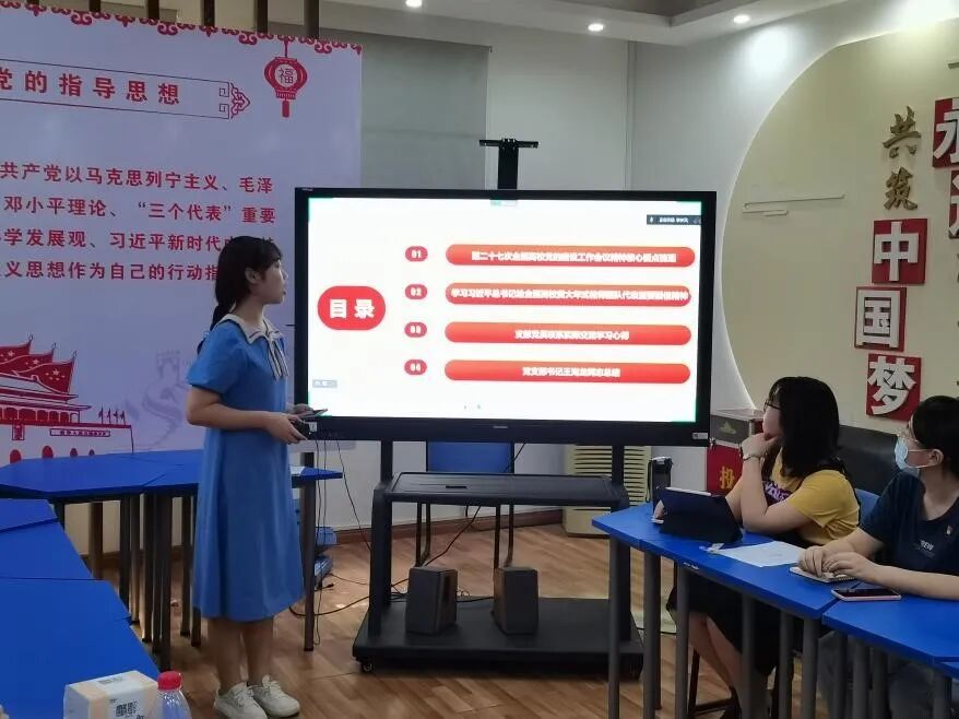 In the first item of the meeting, Li Zhongwen, a member of the party branch, led the members to learn the spirit of the 27th National Conference on Party Building in Colleges and Universities. He played a video on unforgettable moments of the centennial celebrations of the founding of the CPC as an introduction, in order to lead party members to learn general secretary Xi Jinping's important discussion on party building in colleges and universities. By explaining some content of the regulations of the Communist Party of China on the work of primary level organizations in colleges and universities, he pointed out that we should comprehensively and accurately grasp the new situation, new tasks and new requirements, solidly promoting the party building, ideological and political work in colleges and universities, and striving to cultivate socialist builders and successors with all around development of virtue, intelligence, physical conditions, mind status and community service.
