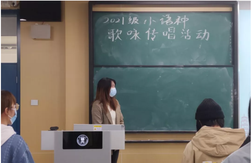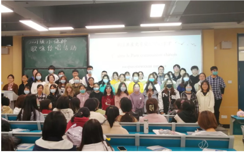 At the beginning of the activity, minor language counselor Xu Yuan described the centenary journal of the party, expressing the expectations for students who can have a better understanding of originality and calling, and derive the strength to go forward from centenary history of our party. As All students chorused the revolutionary song named Ode to the Motherland vibrantly, the activity of singing and spreading concerning the theme of our party’s history started officially by the major of minor language of 2021.