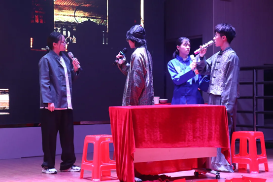 Then, the medley spurred the celebratory mood by Wang Yatong’s team. What’s more, a Grade 2020 student Shi Hao had his guitar solo, a song called meteor. Delicate music and fantastic movie clips had clearly illustrated the life thoughts of youngsters in new era. Drama performance teahouse told a specific period of history to present the general social landscape as well as to provide lessons for modern society for now. Aims of it was a call to Chinese youths to keep the dark historical times in mind and to maintain deep nostalgia for heroes of Party.