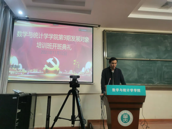 Aiming to fulfill the task of developing and strengthening the construction of Part members, correct the motivation of joining the Party, improve the ideological and political consciousness and ensure the quality of Party members’ development, the opening ceremony of the 9th training class for potential members was held by School of Mathematics and Statistics at room 6401, at 6:15 on Nov. 12. This opening ceremony was led by Cui Yaya, the head teacherLiu Chengzhu, Party secretary of School, Sheng Zhenzhen, the leading teacher, and all potential Party members were attended.