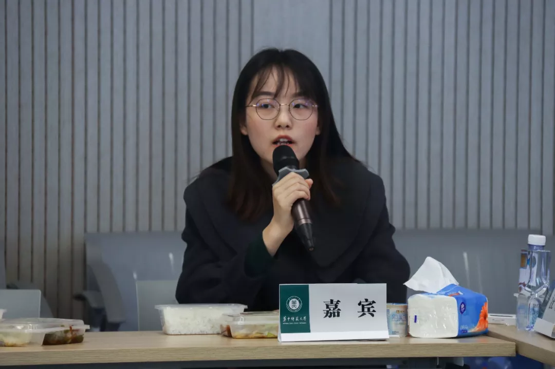 At the beginning, Zhong Wenrui began with a formal address. He welcomed teachers and students at the scene warmly. He mentioned that this activity would help students find right directions in the path of growth with suggestions shared by outstanding students. Moreover, by hosting the lunch meeting, teachers could know more about the students’ difficulties that they met in their daily life as well as their confusions in professional learning, which assisted teachers to guide and teach students better, in the meantime, helped the students to grow into their better selves.