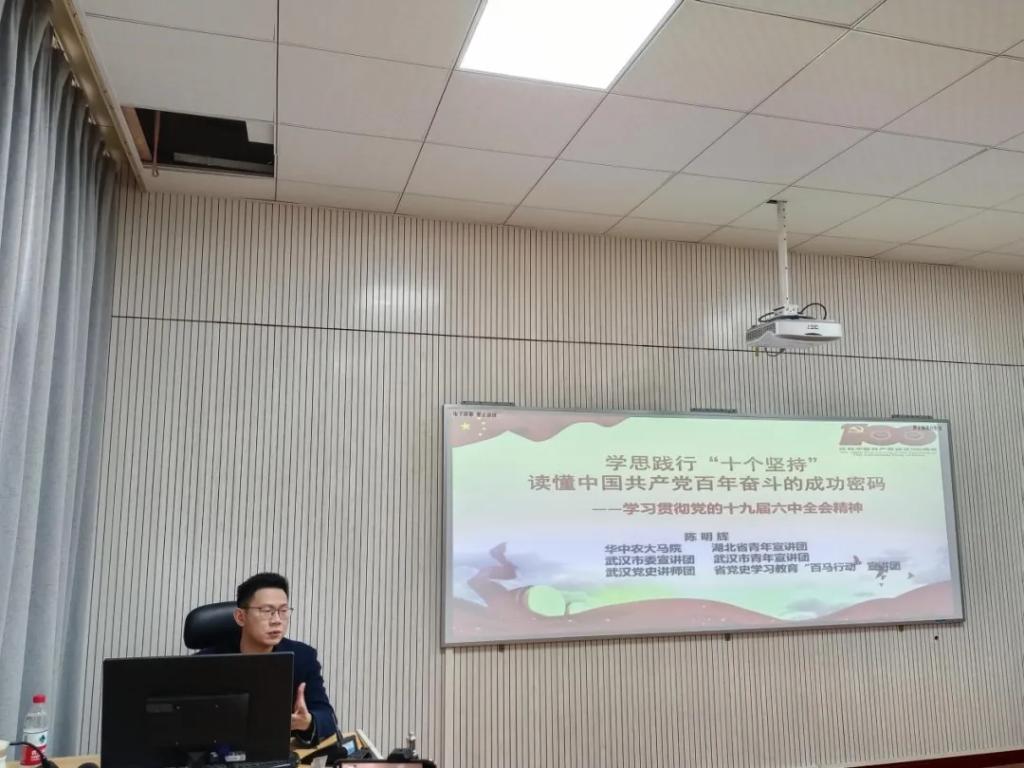 In the activity, Mr. Chen Minghui focused on three aspects, including the summary of the Sixth Plenary Session of the 19th CPC Central Committee, the summary of the Resolution of the CPC Central Committee on the Major Achievements and Historical Experience of the Party's Centennial Struggle, Ten Adherence : Successful Passwords of CPC Central Committee’s centennial struggle. Based on the development course of party’s centennial history, Pro.Chen systematically introduced the main points and spiritual connotations of the Sixth Plenary Session of the 19th CPC Central Committee.