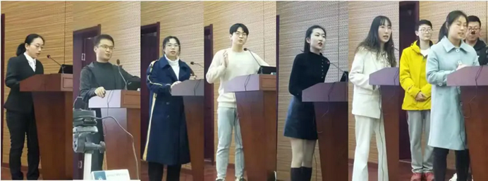 Zhang Leyan, the representative of the internship team of Taiyuan Foreign Language School, used a PPT to demonstrate the internship characteristics of the team—orderly development of subject teaching, unity and cooperation in daily work, in-depth participation in educational research development using multiple methods such as questionnaires and interviews. He Xiangyuan, the leader of the internship team of Wuhan No.6 Middle School, said that during the internship period, the instructors of the department and the internship school gave a lot of encouragement and help and thanked them. He also emphasized that after the internship he deeply realized that besides basic teaching, teachers also had teaching, research and many other things need to develop.