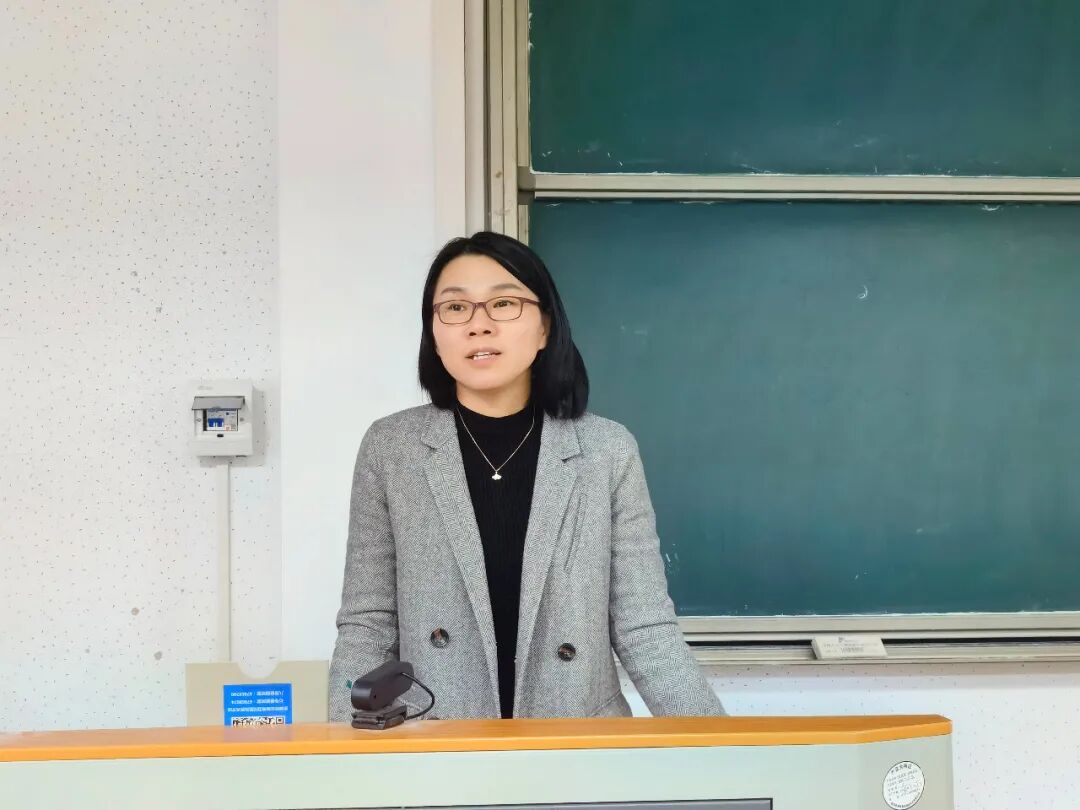 Yang Lingzhen, Deputy Secretary of the Party Committee of the College of Foreign Languages, is delivering a concluding speech