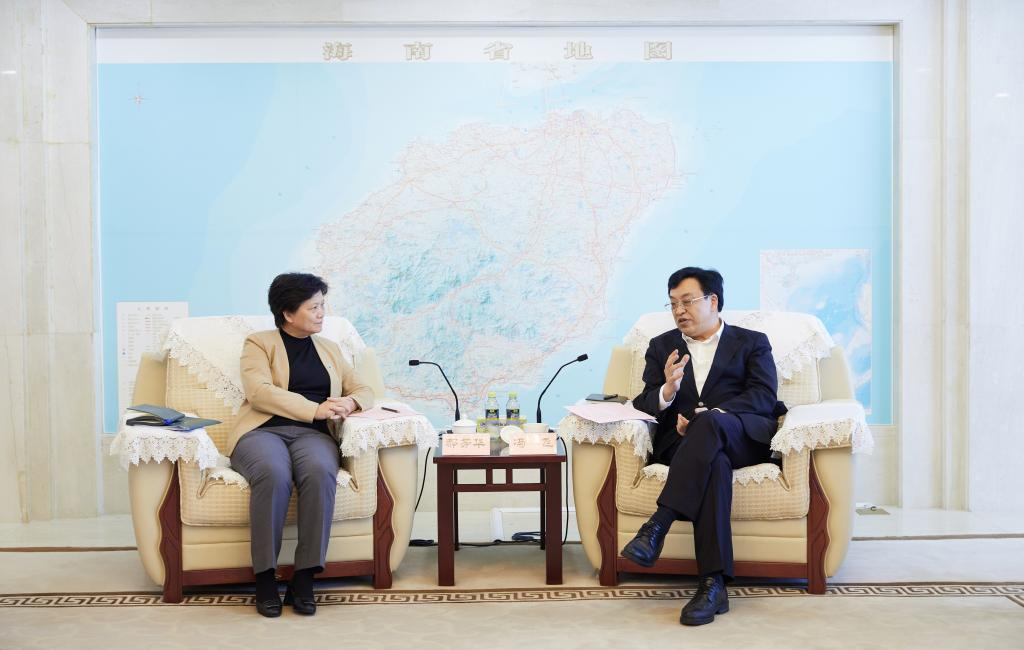 Feng Fei, Governor of Hainan Province, met with Hao Fanghua and her delegation on December 30th. Governor Feng Fei expressed warm welcome to President Hao Fanghua and her delegation, expressed sincere thanks to Central China Normal University for its strong support to the cause of basic education in Hainan Province, and fully affirmed the remarkable achievements of bilateral cooperation.