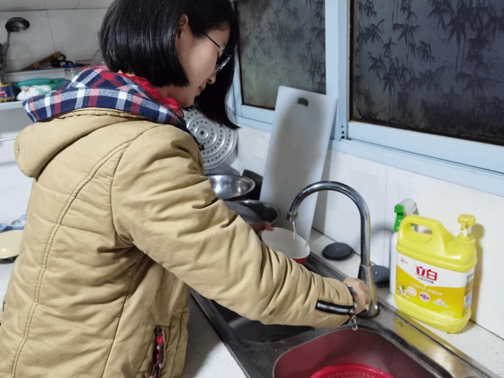 Qin Baolian in Class 2009 integrated into labor practice through washing dishes, picking vegetables, making dumplings and purchasing necessities for the New Year. From her experience, she not only felt moments of warmth in daily life, but also tasted a feeling of satisfaction and happiness brought by labor when she helped her parents with housework.