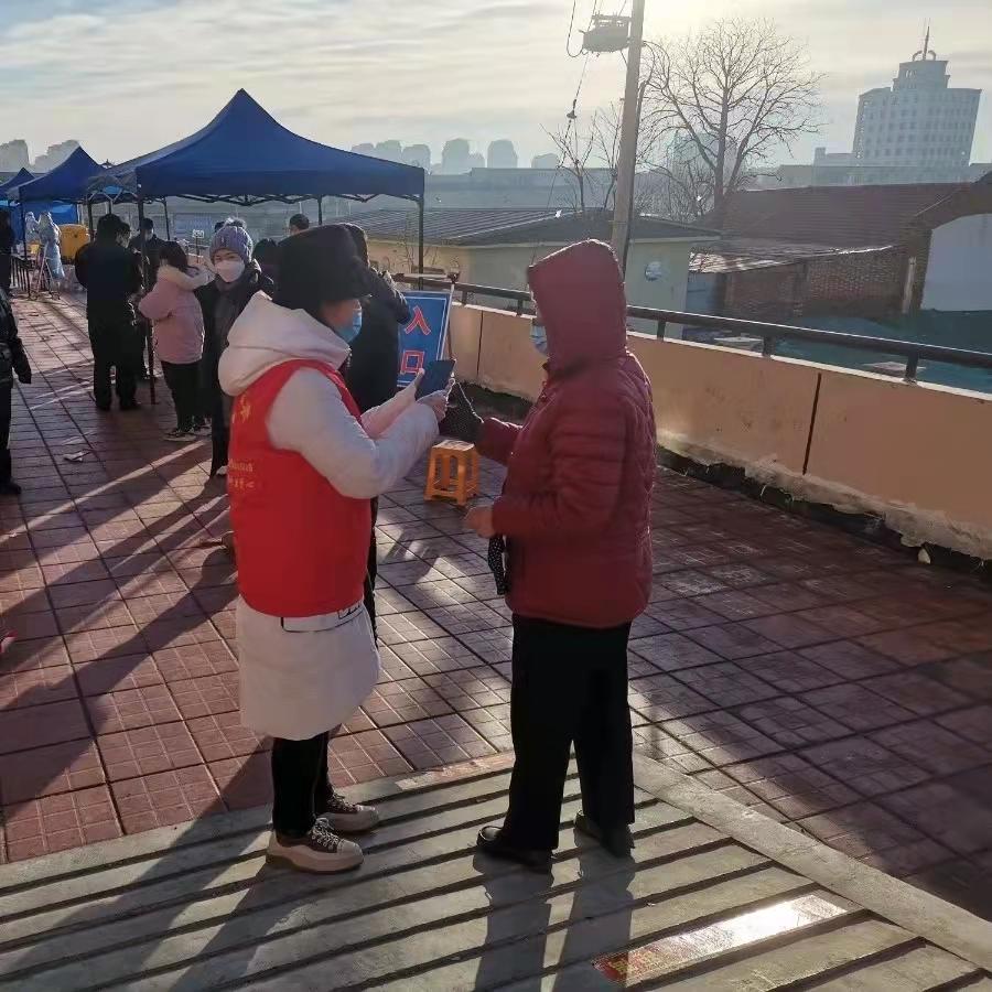 Zhang Yu in Class 2001 was responsive to the appeal released by her community and participated in voluntary activity to help home-going residents to have nucleic acid detection. She examined and checked health codes and route codes of residents who were asked to have nucleic acid detection at the entrance. She hoped that she could devote herself to the epidemic prevention and control with her labor.