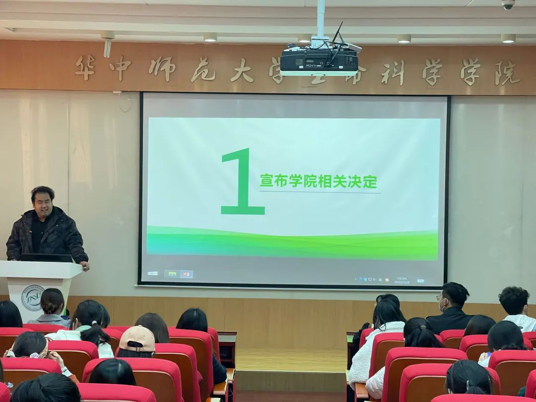 In the first item of the meeting, Tang Jiaqi announced the relevant decisions of the college. According to the decision on the appointment and removal of Xu Chenyang and other comrades of the Committee of the School of Life Sciences of the CCNU, Tang Jiaqi announced Xu Chenyang as the secretary of the Youth League Committee of the School of Life Sciences.