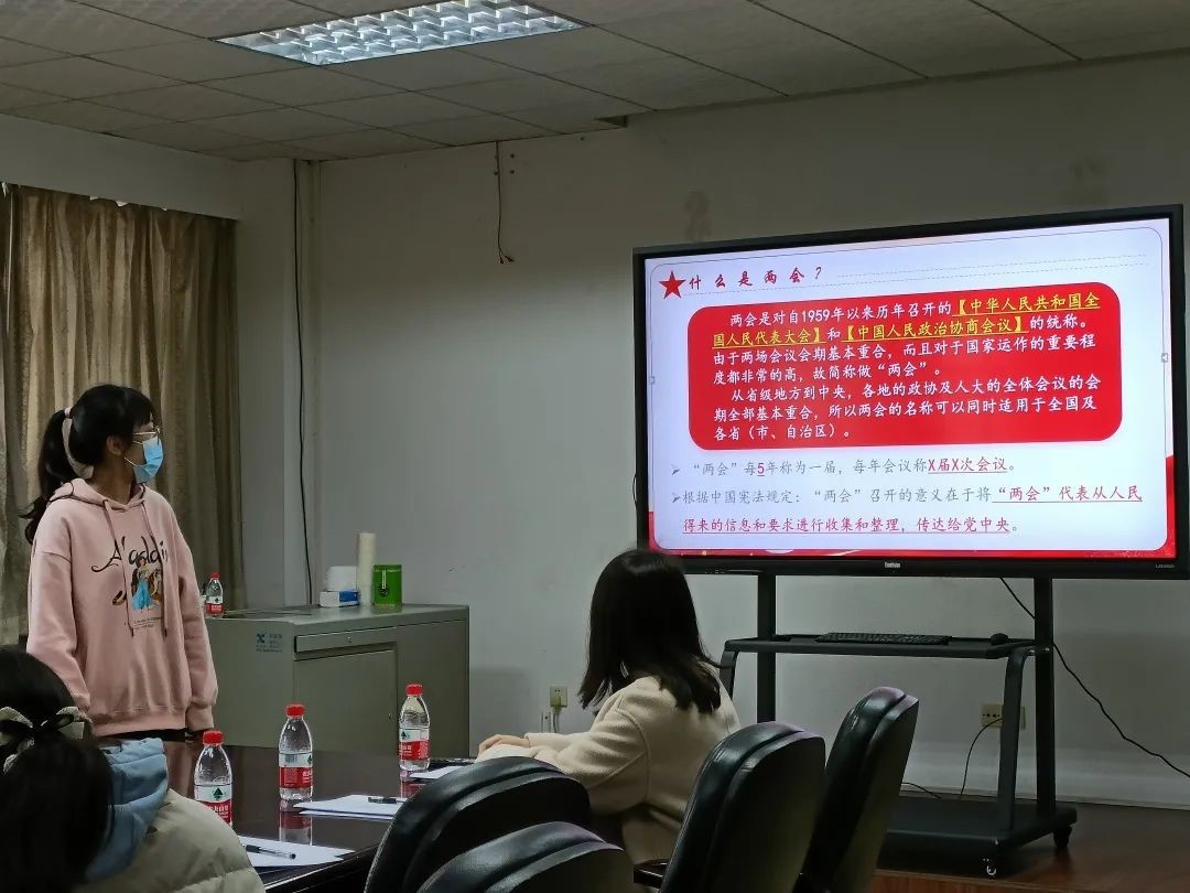 At the beginning of the activity, under the leadership of Shanshung, all members learned the basic knowledge of the "two sessions" through two short videos, understood the status and functions of the two sessions, and the importance of the "two sessions" to the operation of the country. "The significance of the two sessions is to collect and organize the information and requests from the people and convey them to the Party Central Committee.