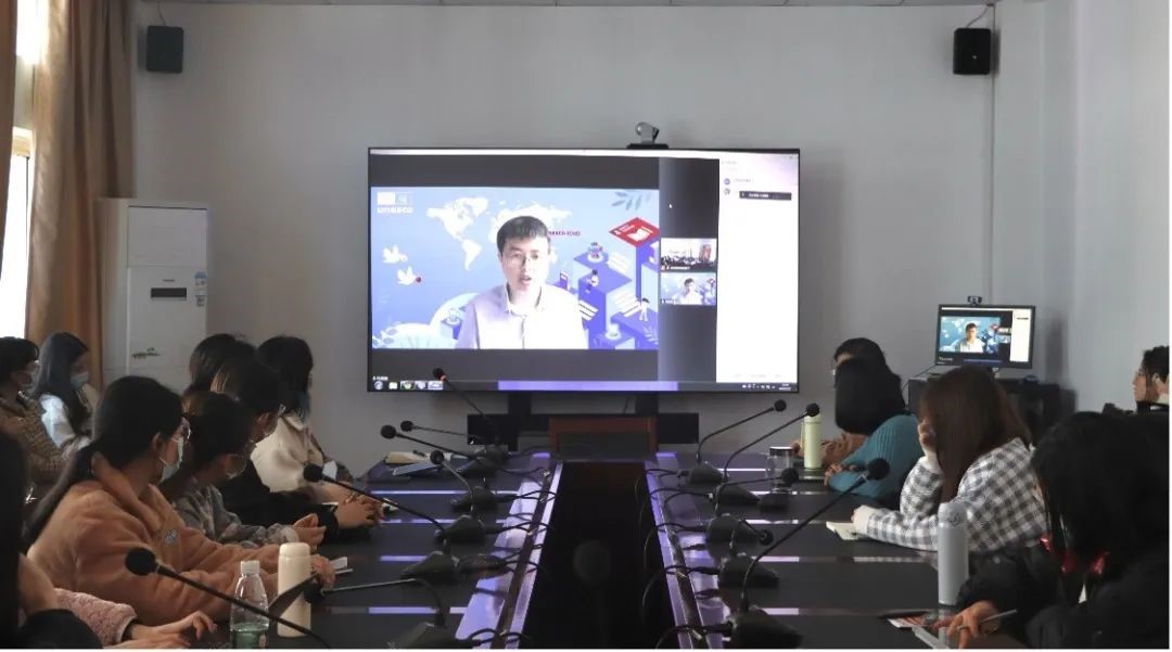 After that, the School of Foreign Languages hold the first big rostrum of the “Turn Languages into Our Wings” plan aiming at improving the students’ ability to deal with international affairs. The supervisor of UNESCO higher education innovation center project, who was also our school alumni, Feng Siyuan held the post of being a keynote speaker of phase one. The lecture themed on “The UNESCO was in China”, based on the development history of UNESCO, analyzed the role played by China in the present and its international influence to further look forward to the future, in the meantime, revealed demand for professionals caused by the development of international organizations and employment opportunities for contemporary youth.