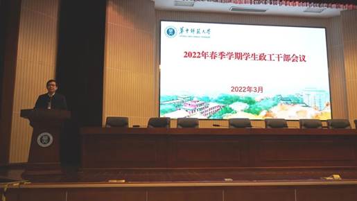 The voice of CCNU On March 9, CCNU held the meeting of political work cadres of college students in the spring semester of 2022, involving Chen Diming who is deputy secretary of the Party committee and director of Office of Student Affairs of the Party committee, the responsible people of the Student Work Department of the Party committee, directors of each cultivation units responsible for student affairs, counselors of undergraduates and graduate students. The meeting was hosted by Chen Diming, deputy secretary of the Party committee.