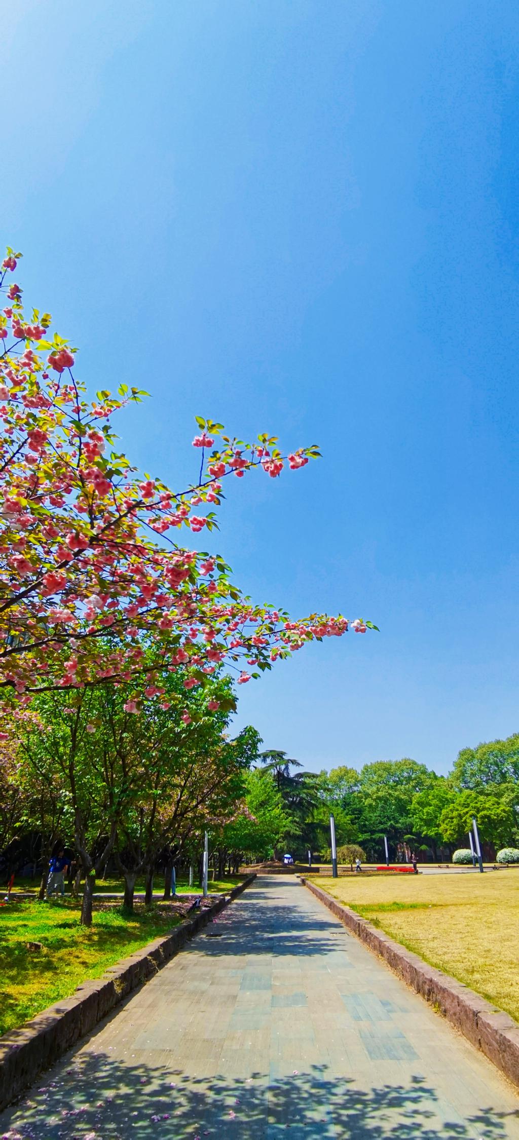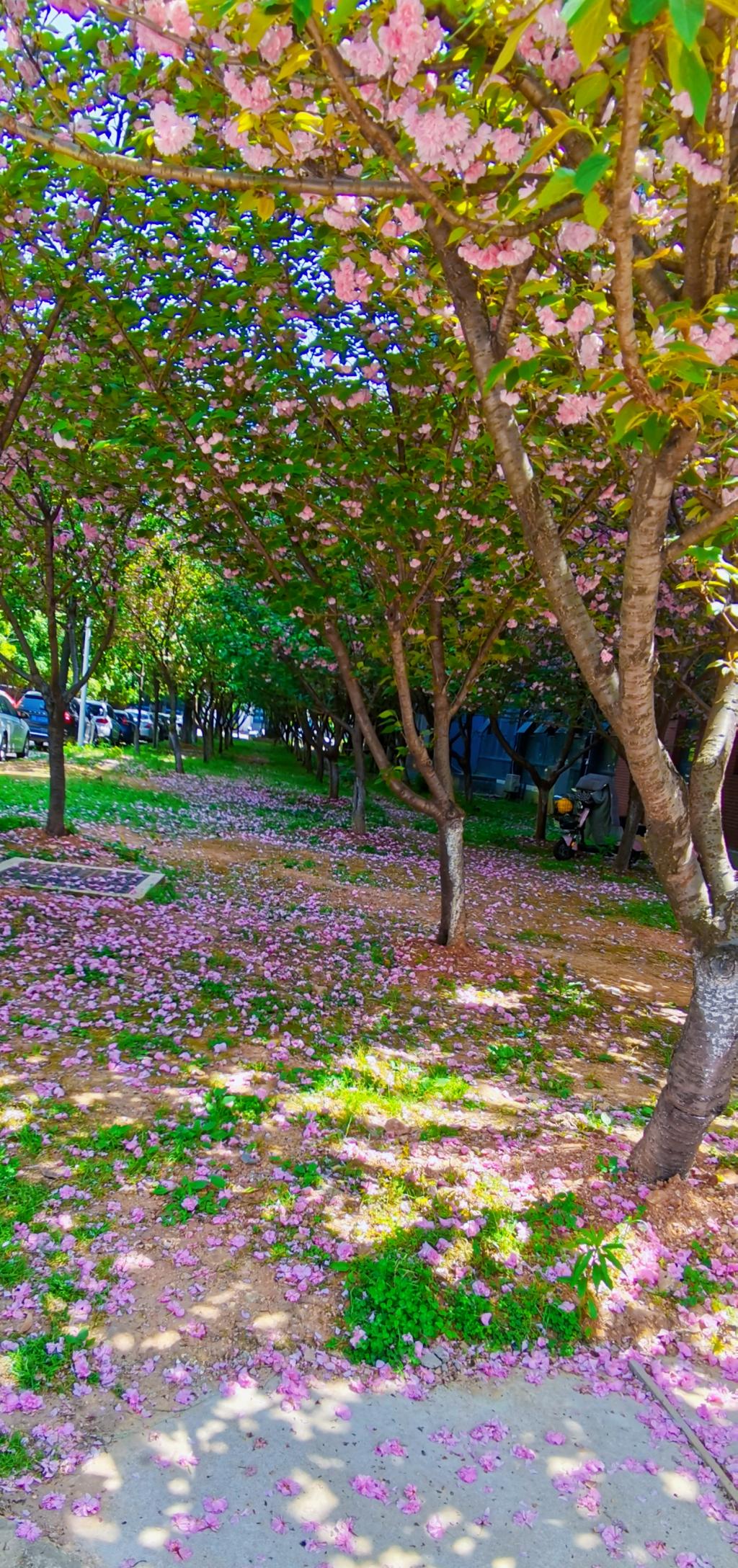 As long as spring does not die, there will be flowers that welcome spring, opening year after year, the nirvana of life, born and will live forever in another form. The blue sky is endless, and the soft clouds are like a veil attached to the sky. Early cherry blossoms and late cherry blossoms came in abundance. The early cherry blossoms at Boya Square were in full bloom, and although the school was closed, the students' hearts were not sealed in their desire for beauty. The petals fell into the soil and into the camera, which made everyone's head full of spring. The early cherry blossoms were short-lived and withered before they met with the late cherry blossoms. Late cherry may have had the representative of early cherry and attended this spring in full dress. The pale pink petals entwined with the gentle spring breeze, and in a moment, the sky was filled with pink rain falling on the ground, spreading into a dream carpet. After seeing the early cherry blossoms that intertwine with the spring chill, and then seeing the late cherry blossoms that blend with the sunshine, it is even warmer to feel the warmth of spring.