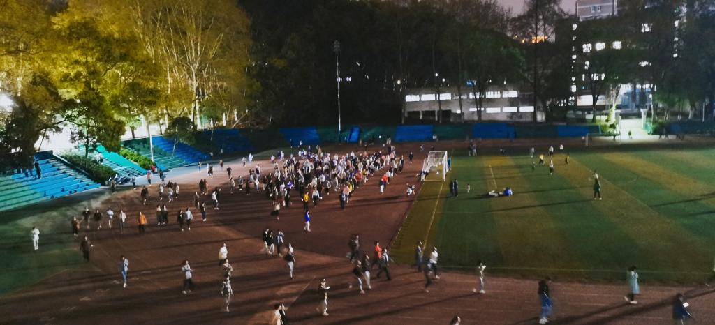封校期间确确实实让我见到了电视剧中明媚的大学生活。虽然大家出不了学校,但同学们都在尽自己的努力,让学校充满活力与朝气。夜晚在操场散步时,不再是平常匆匆忙忙的行人,有高校常见的“广场舞大军”,有羽毛球大队,还有操场“音乐会”……大家的丰富的日常活动让疫情不再可怕,也为我们的封校生活增添了无限乐趣。
