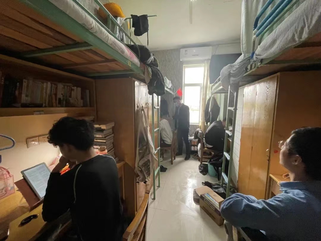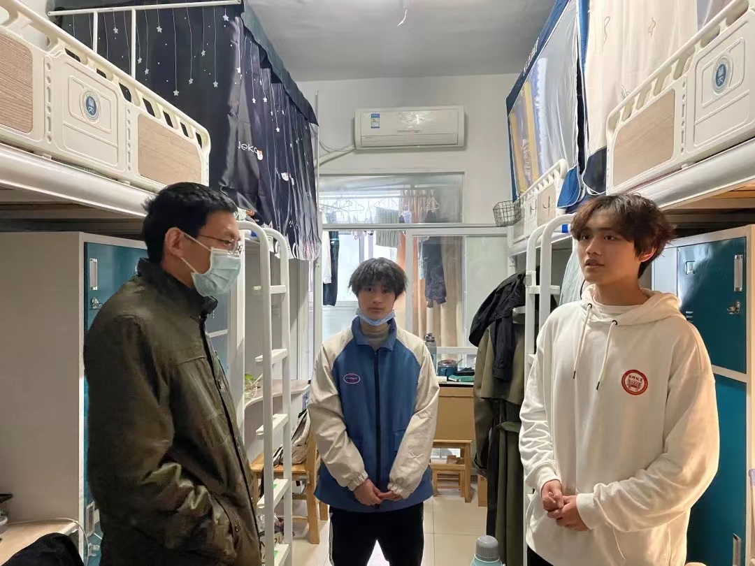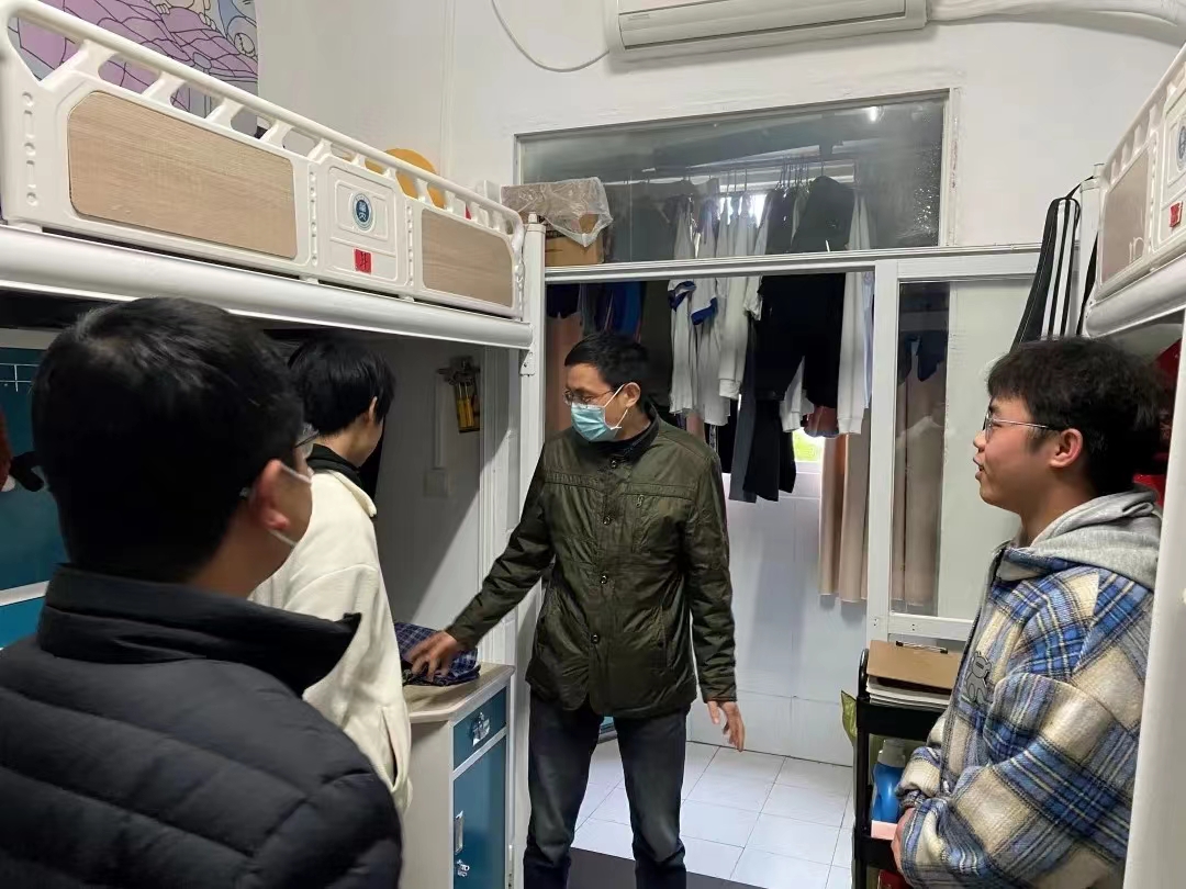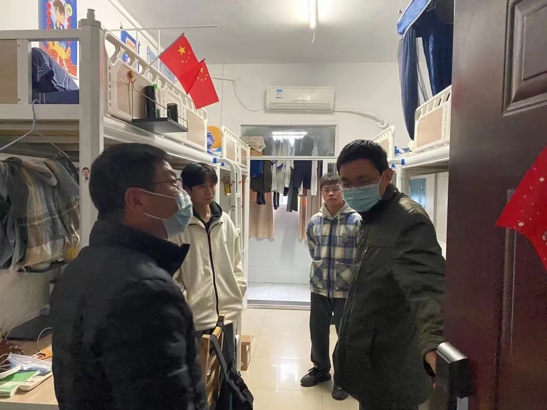 At the same time, Feng Shengbing and other people also focused on whether the student dormitory is in place for epidemic prevention measures, whether the dormitory is well ventilated and whether the hygiene is neat and tidy. Students were reminded to strengthen their awareness of epidemic prevention, wash their hands regularly, ventilate the dormitories and disinfect in a timely manner. Guo Jindong, a grade counselor, reminded students to keep their dormitories hygienic, dispose of waste items such as take-out boxes and express boxes in a timely manner, and pay attention to timely hand washing and disinfection after taking such items.