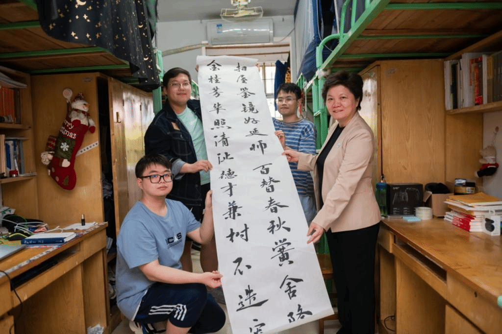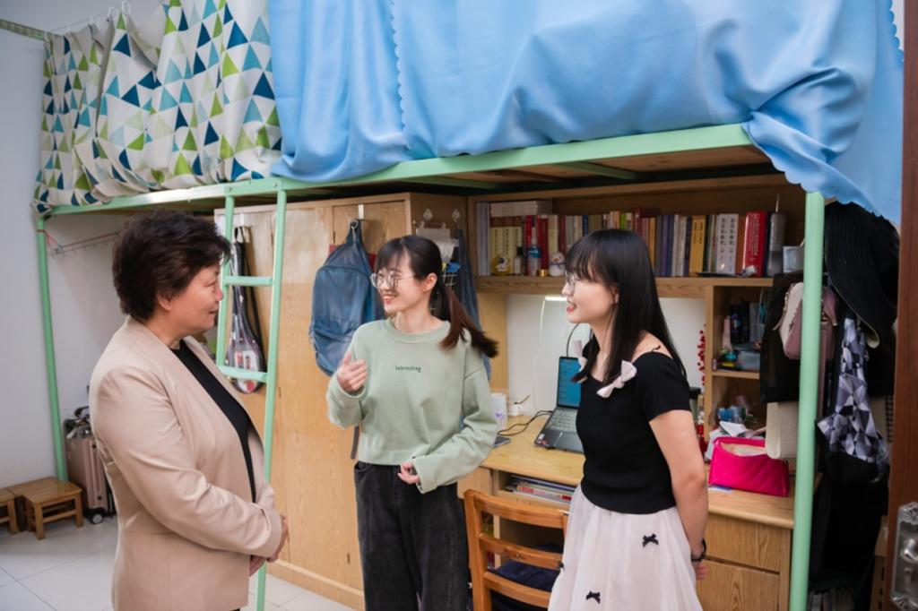 President Hao first came to Dormitory 216, in Building 5 of Yuanbao Mountain Building with her delegations. She had a cordial conversation with the undergraduates and asked in details about their current situation of study and life, destination after graduation and their arrangements of a series of activities in the graduation season. Learning that everyone had signed a contract or would study for a master’s degree, she sent a message to them that she hoped they would continue working hard and contribute to the construction and development of their Alma Mater in the future.