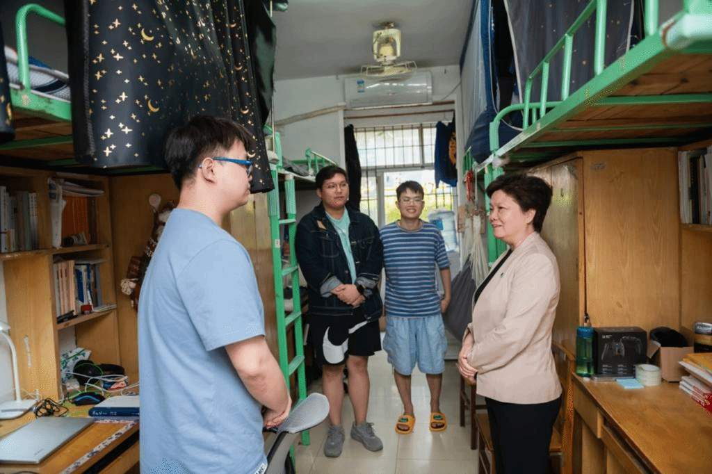 During this visit, President Hao’s cordial and sincere greetings brought warm care to our students and formed a good effect of “visiting one student will warm the whole dormitory and drive the whole school”. Our school will continue going deep into the student group, listening to students’ voice, solve problems for students based on "Three-wide Education" system and made education with warmth.