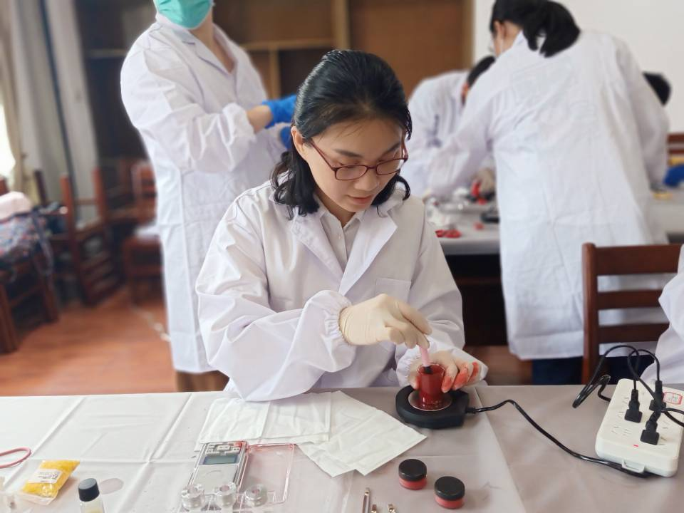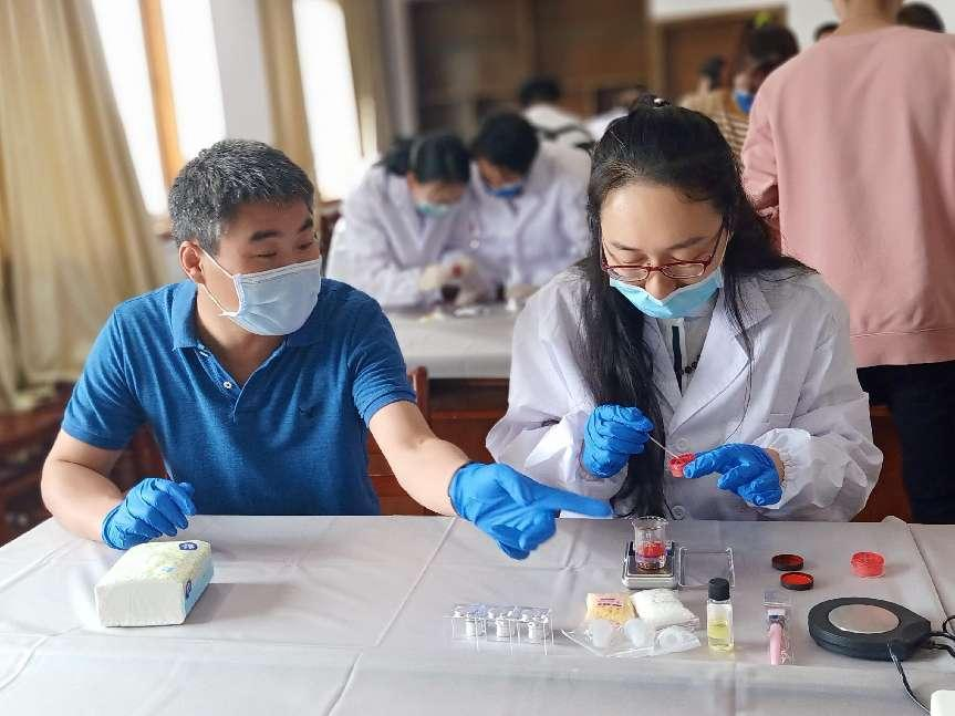 To ensure that every participant could make their favorite lipstick, student volunteers were arranged on site to explain, guide and help the teachers in time.