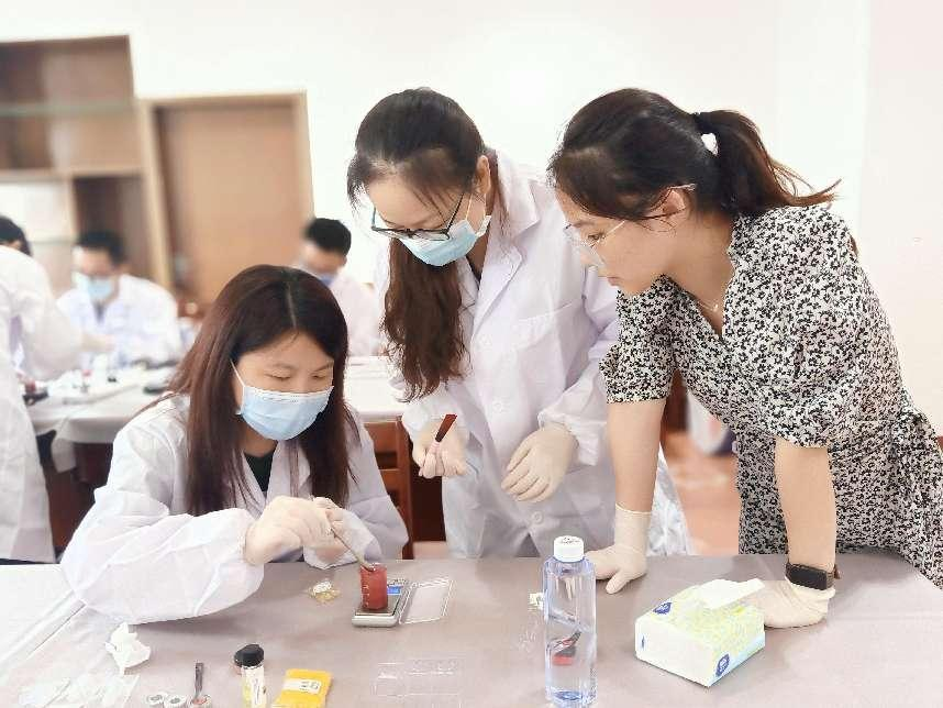 At the beginning of the activity, Tian Demei, the teacher in charge of the basic experiment of the college of chemistry, explained the production methods and steps of DIY lipstick, and demonstrated the operation difficulties on site. To ensure the safety of the activity, all personnel participating in the activity should wear experimental clothes and latex gloves. This activity adopted the group cooperation mode, and a group of 2-3 teachers is formed.