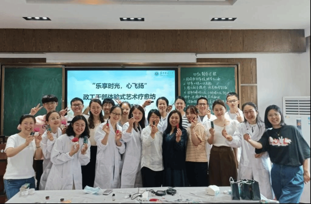 On the afternoon of May 26, the DIY lipstick production activity of the "enjoy time and be happy", the political work cadres' experiential art healing workshop was successfully held in the conference room H705 of Shaw chemical building. This activity was hosted by the Student Work Department of the Party committee of Central China Normal University and the mental health education center, and organized by the red pomegranate one soul post station and the red pomegranate ingenuity studio of the college of chemistry. It aimed to better protect the physical and mental health of political cadres, strengthen communication between political cadres, enhance team cohesion, improve the happiness index of political cadres, and convey the discipline concept of "chemistry, make life better" to all political cadres to let participants relax in the experience and feel the magical chemical charm. A total of 15 teachers from 10 units participated in this activity, which was hosted by Chen Yuxi.