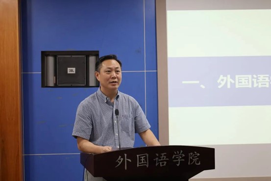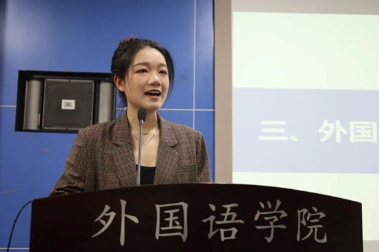 The second item was that Yang Lingzhen, Deputy Secretary of the Party Committee of School of Foreign Languages, introduced the assignment of activities of the Foreign Language Culture Festival, which lasted for three months and was divided into four chapters, including 11 subprojects, such as the “FLTRP · Guocai Cup” National English Speech Contest Campus Trials, the Foreign Language Book Reading Contest, the Most Beautiful Class Notes, Reading Notes Contest, and the “Language Wing” International Competence Improvement Forum. She mentioned that the cultural festival aimed at integrating foreign language culture into the lives of students from School of Foreign Languages and others in CCNU, guiding them to appreciate the charm of foreign language culture, expanding their international vision and present compelling China stories.
