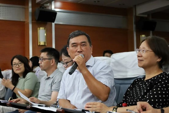 Professor He Juchun is making comments
